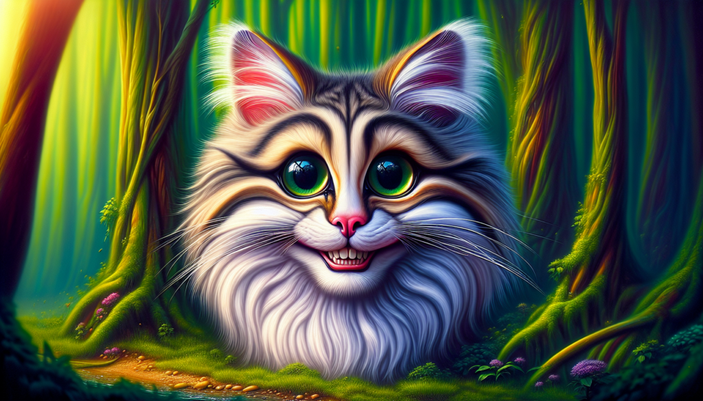 In an enchanting forest, an extraordinary creature resided – part cat, chipmunk, and rabbit. Its cheeky grin, fluffy whiskers, and caricatured innocence danced vividly amidst the foliage. Saturated hues cast a playful light on its exaggerated fur, captivating all who witnessed this unique hybrid. Despite its peculiarity, no fear was