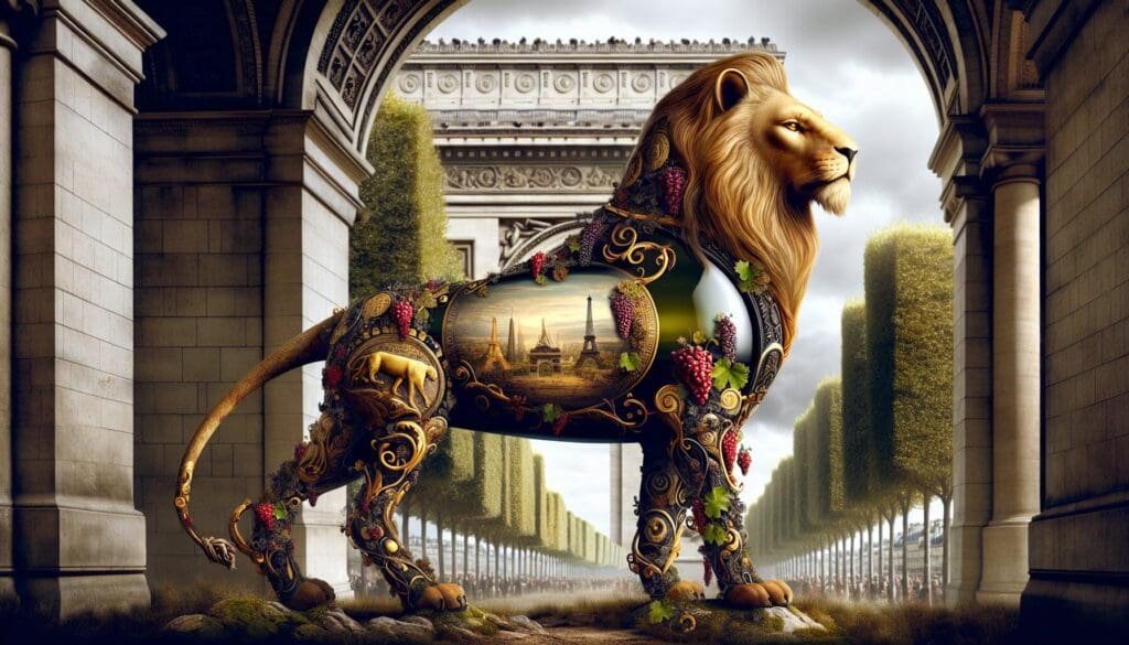 In the heart of medieval Paris, a remarkable creature took shape, embodying the essence of France itself. With the grace of a ballet dancer, it combined the imagery of its homeland, a wine bottle, and the iconic Arc de Triomphe. This mythical being soared above the city, a testament to