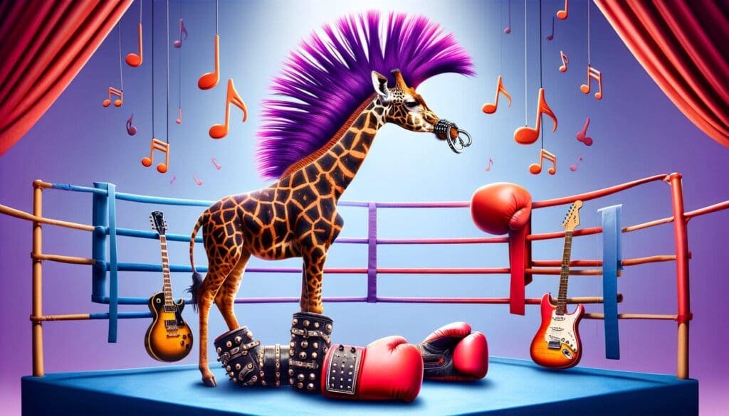 In the heart of a city that never sleeps, where the lights of the night vie with the stars, a spectacle unlike any other unfolds. Central to this tale is the champion of the marquee event, a creature unlike any other. A giraffe, standing tall in a boxing ring, ready