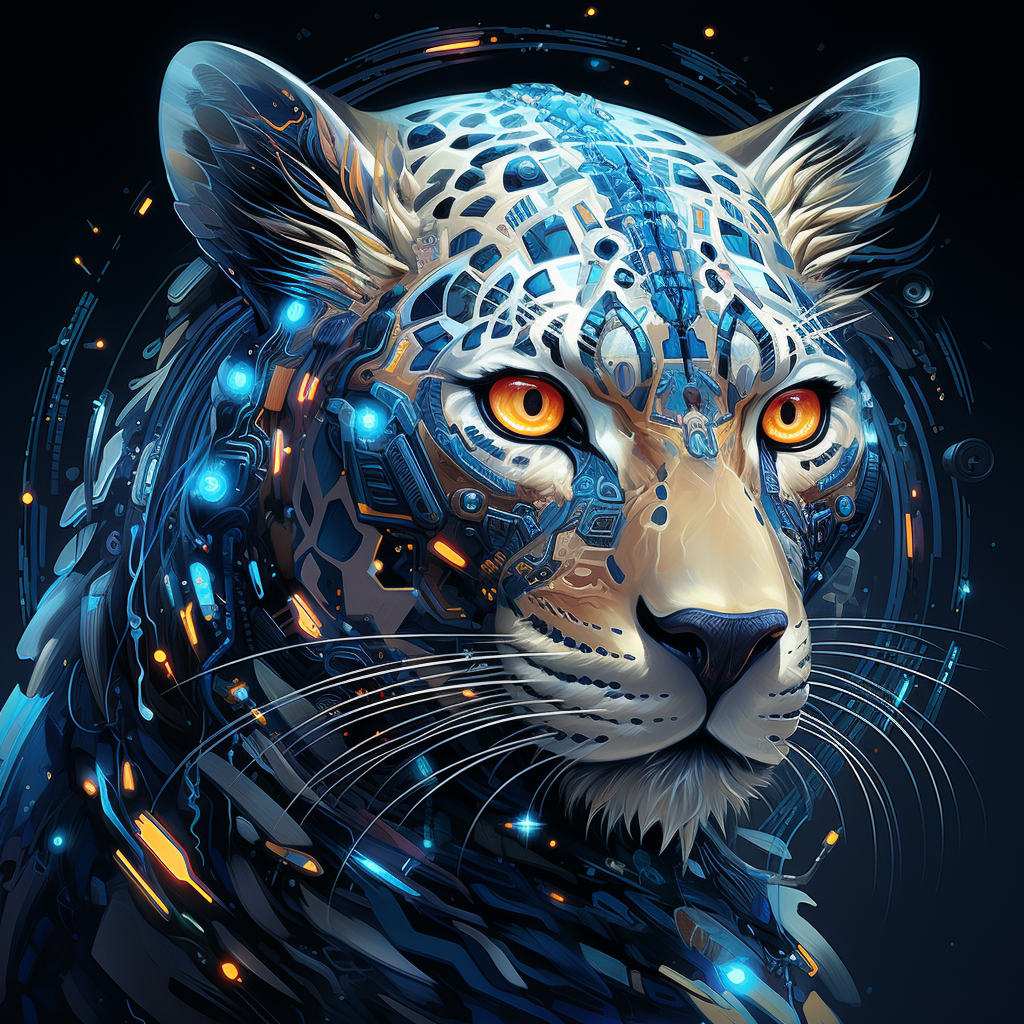 Within a swirl of vibrant colors, a lioness emerged, her face exuding the power of Beyoncé. Her mane, radiant with future-tech detail, swept about her like a regal cloak. Embellished with AI-laden details, dignified tattoos and holographic whiskers, she roared a melody of strength, resilience, and celestial majesty to the