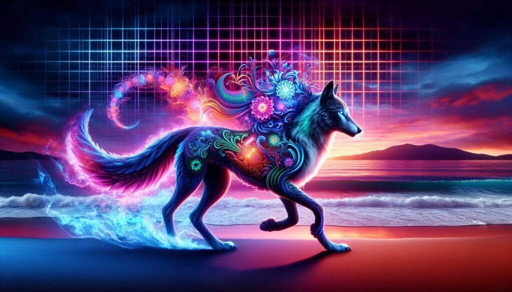 In a world where grace and determination collided, a remarkable creature emerged. Part she-wolf, part warrior, this magnificent fusion stood poised on a pristine beach, exuding strength and protection. Its form, a testament to its defenders essence, commanded an elegance that captivated all who beheld it. As the creature proudly