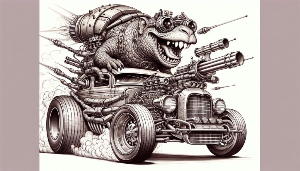 In the heart of a buzzing city, where classic muscle cars rumble on the asphalt, and steampunk aesthetics thread peculiar narratives, a fascinating convergence of the two cultures takes form. Here, sparks of anthropomorphism blend with the raw power of engines and gear-work, birthing a sketch almost too extravagant even