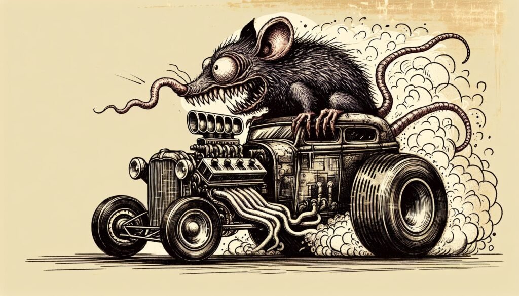 The Rat Rod pencil sketch stirred the viewers imagination into life, depicting an unexpected fusion of a mouse, a viking, and a snake. This titanic beast was a specter straight from eccentric folklore, flaunting comically bulging eyes that betrayed a sense of madcap adventure. Its tongue, as rebellious as the