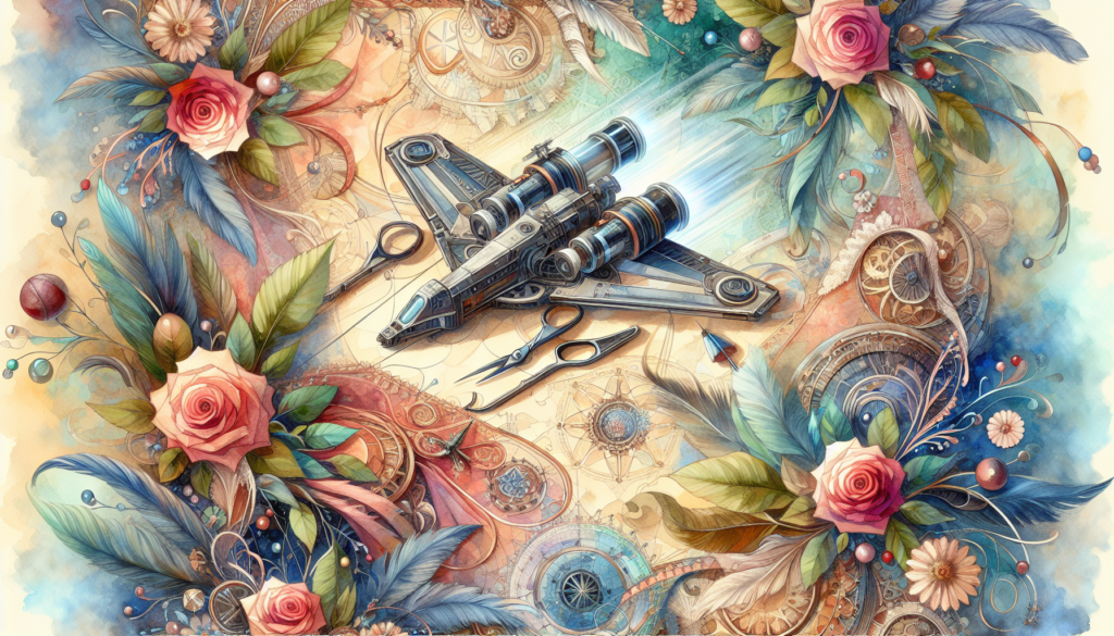 In a surreal blend of past and future, Victorian seamstress artistry meets retro futurism. Soft pastel watercolors depict floral patterns, needlework, and dressmaking elements, beautifully interrupted by a vintage spaceship. Underneath, the phrase May the Force Be With You silently echoes, seamlessly woven into this whimsical tableau. Interesting Facts: 1.