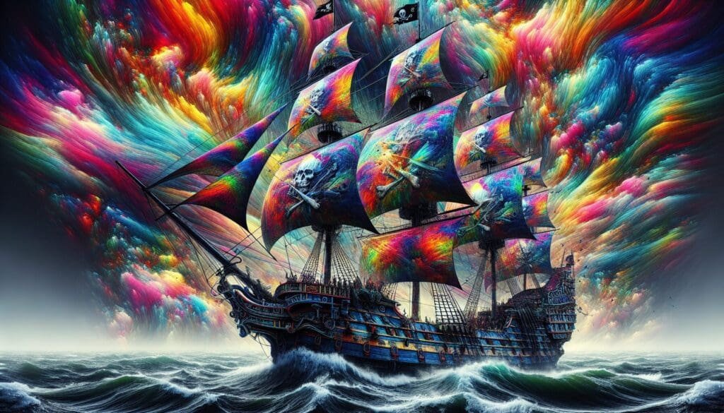 In the heart of a tempestuous North Sea, a colossal pirate vessel braved the onslaught of raging waves. Its hull, crafted with utmost realism, withstood the ferocious impact of the roiling waters. But it was the fantastical mainsails that captured the eye, an array of colors so vibrant and wild