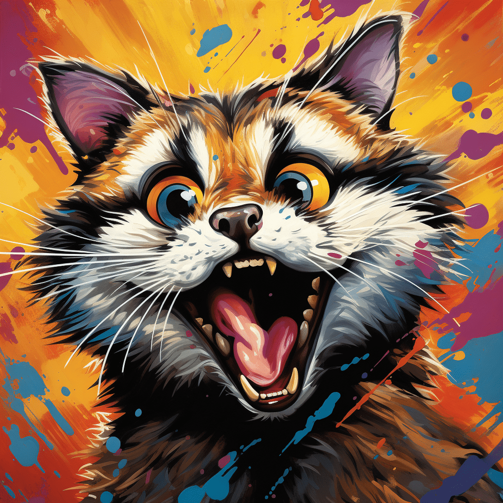 Within a sunlit meadow, an extraordinary creature playfully roams, embodying a unique fusion of cat, raccoon, and chipmunk. Exuding vibrancy and a nonsensical charm, complete with a coat of airbrush art and gleaming, curious eyes, it captures teen imaginations with its friendly aura and detailed elegance. Artfully crafted by Dima Dmitriev, it indeed is a hyperrealistic pop art wonder.