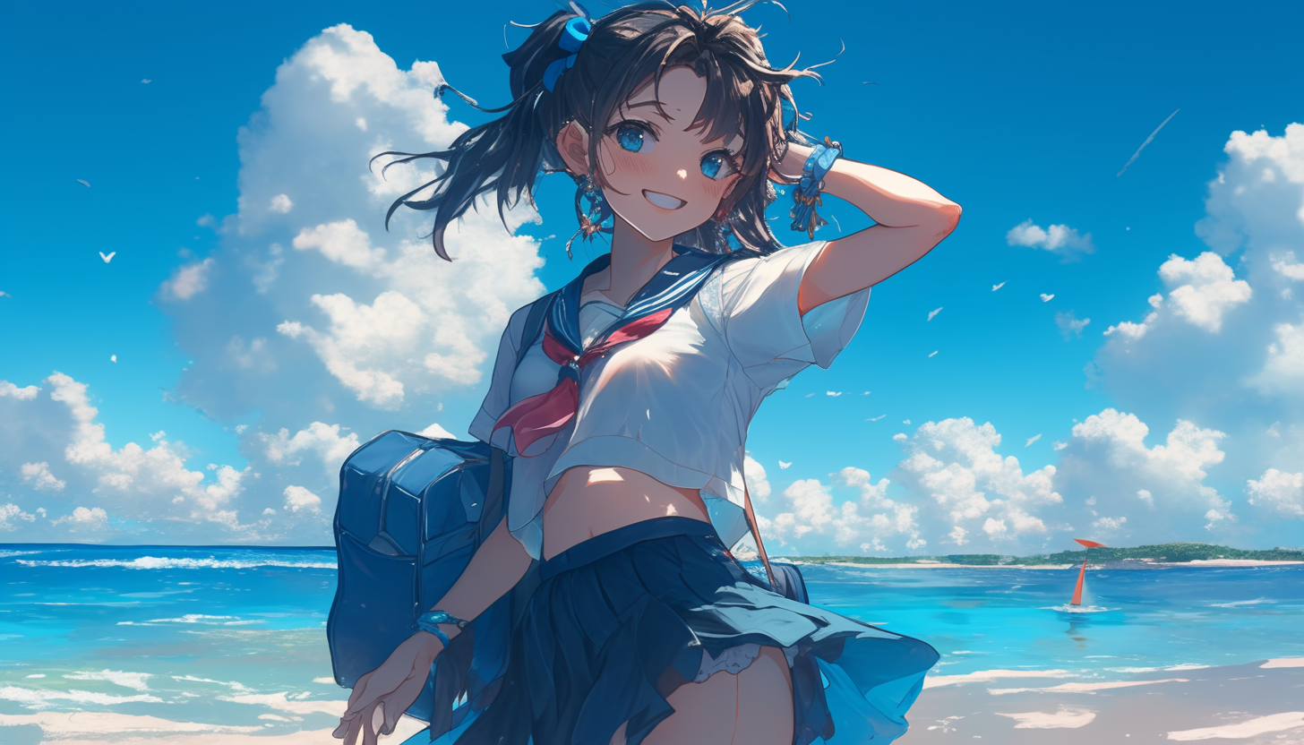 A windy day on the beach is a symphony of natural beauty. The sea roars with lively waves, crashing rhythmically against the shore, while the wind dances through swaying palm trees and rustles the golden sands. Kites soar high, painting the sky with vibrant colors. The sun glints off the water, creating sparkling patterns. Seagulls glide effortlessly, their calls mingling with the ocean’s song. The air is fresh and invigorating, filled with the scent of salt and sea. It’s a scene of dynamic tranquility, where nature’s energy and serenity blend harmoniously, creating a breathtaking coastal spectacle.